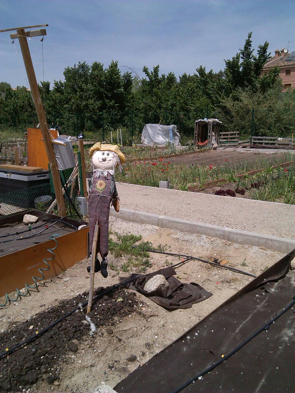 Uno de esos días que hasta la felicidad aburre, me cogí del brazo de la soledad y empezamos a caminar sin rumbo fijo ¿para qué buscar uno u otro? si todos están dentro o no existen. Conocía un huerto colectivo que no visitaba desde tiempo. Enseguida llamó mi atención un singular espantapájaros que era lo más propio y parecido de la humanidad. Traté de entablar conversación con él de una y otra cosa, pero no obtenía respuesta, parece ser que no le gustaba hablar, pero digo yo, que eso no significa que no le guste escuchar. Así que me senté a su vera y empecé a relatarle todos los cuentos que me venían a la memoria, que no son pocos. Y esa dulce costumbre la mantengo hasta hoy día y, cuando se avecina la media tarde, tenemos cita de cuenta cuentos. Servidor recita y mi amigo el espantapájaros escucha atento todas mis fantasías y ocurrencias.
