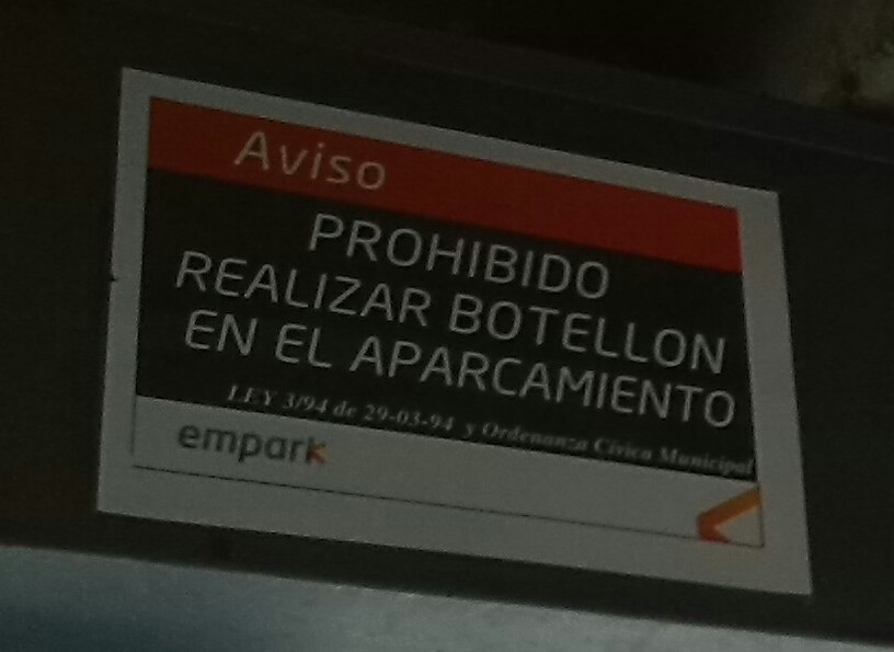 No suelo ir de botellón, me gusta beber acompañado, pero a solas. Me gustan los botellones ecológicos, los botellones vegetarianos, los botellones poéticos, los botellones metafísicos y los botellones en los aparcamientos, pero, los nuevos propietarios de mi garaje favorito han decidido, cruel destino, no permitir esta «socialización popular» en su recinto y pretende que hagamos botellón extramuros de sus posesiones. La  depresión está corriendo por las venas de los adictos a dicho evento. Vamos a manifestarnos hasta que la cordura entre de nuevo en los garajes. Sin la locura de unas gotas (o algo más) de alcohol, quién puede superar la realidad? Eso o que se nos permita un abanico de oportunidades para poder vivir o un amplio surtido de cursos vitales para abrazar esperanzas dignas. Y conste que me han echado de muchos botellones por no beber, pero eso ya sería otra historia.