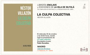 Muy distintas y sugerentes actividades se nos presentan en próximas fechas. Desde la presentación de «La culpa colectiva» de Néstor Villazón, editado por Isla de Sistolá hasta la presentación del escritor Antonio Torres en la Residencia de Estudiantes. Sin olvidar los espectáculos para bebés en la Sala Berlanga o la Feria del libro de Chiclayo. Y un broche internacional que tendrá lugar en la Feria de Fotografía de Budapest donde tendremos ocasión de contemplar la última hornada fotográfica del colectivo Arte-Desgenerado.