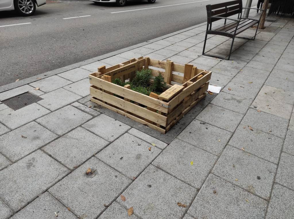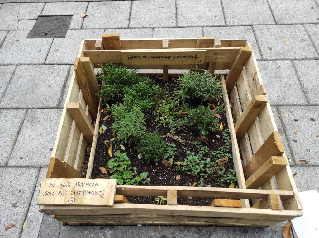 Nuestras calles comerciales están amortajadas de asfalto, pero hay emprendedores ecológicos que no se rinden. Este es un ejemplo palpable, una calle sin árboles, no hay problema, se planta en un hueco un proyecto de huerto, modesto pero vistoso y pleno de significado y perspectivas de comunión, entre la ciudad y la naturaleza. (Fotografías de Tuchy Regueras)