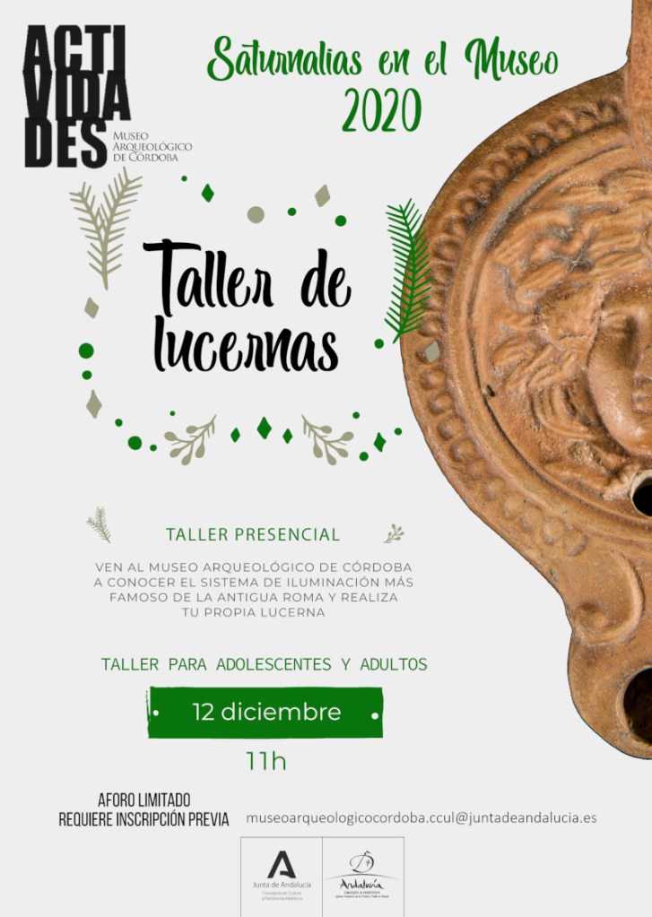 El Museo Arqueológico de Córdoba celebra las «Saturnalias en el Museo 2020» con un sugerente Taller de Lucernas. Para mayores detalles e información, consultar el programa adjunto o comunicar con el Museo. Hay que tener en cuenta que se trata de un Taller presencial.