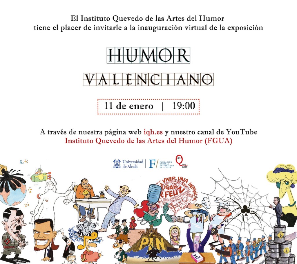 Nos hacemos eco de la inauguración virtual de la exposición «Humor Valenciano» que presenta El Instituto Quevedo de las Artes del Humor, el próximo día 11 de enero a las 19 horas. A través de la página web  iqh.es y su canal de YouTube