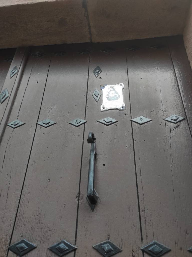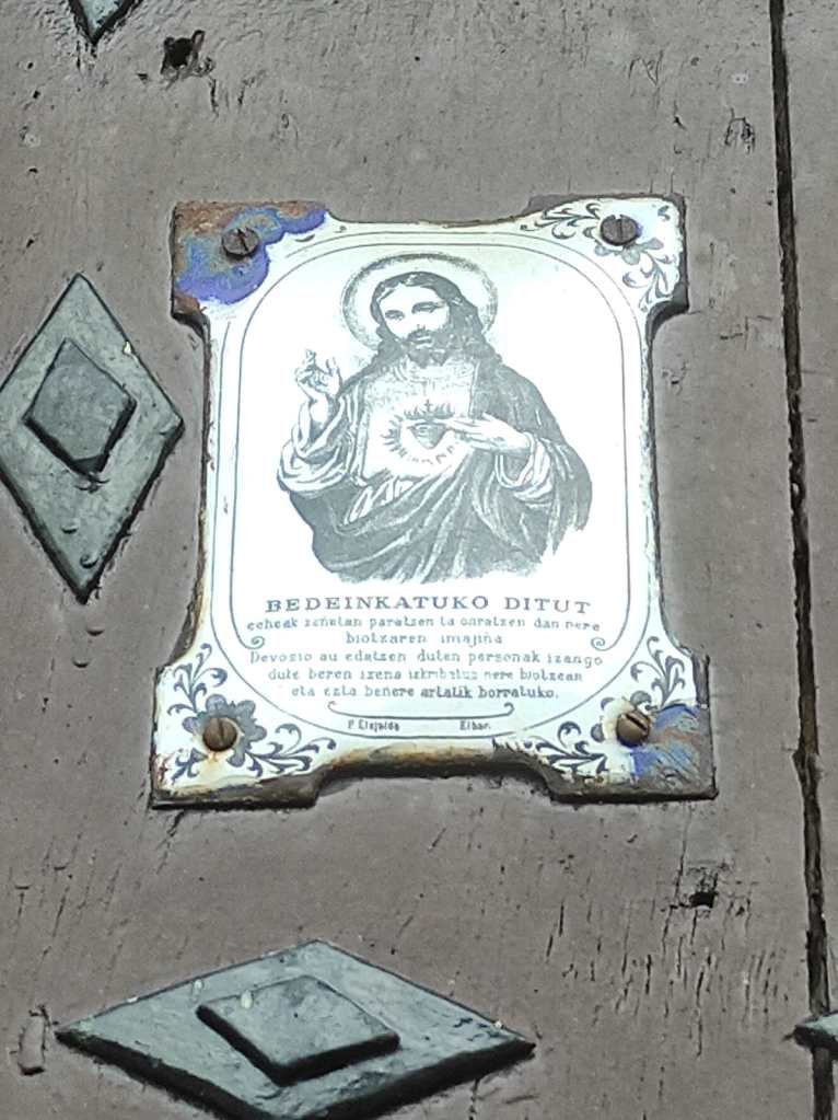 No resulta complicado, todavía, encontrar clavadas sobre las puertas distintas bendiciones, chapas religiosas, útiles para cuidados del cuerpo y del alma y, sobre todo, cordialidad y afectividad, para quien llegaba a esa puerta y se encontraba en primer lugar con semejante buena voluntad. Esta bendición esta escrita en euskera y localizada en el norte de Navarra.