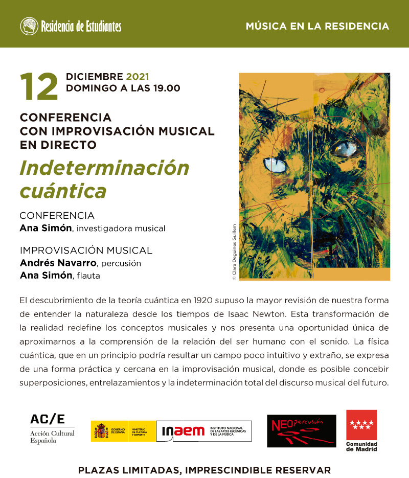 Sugerimos una conferencia con improvisación musical en directo a cargo de la investigadora musical Ana Simón, acompañada para el evento por el percusionista Andrés Navarro. Toda una propuesta intelectual que enlaza con las emociones musicales. Para mayor información y detalles consultar el programa adjunto.