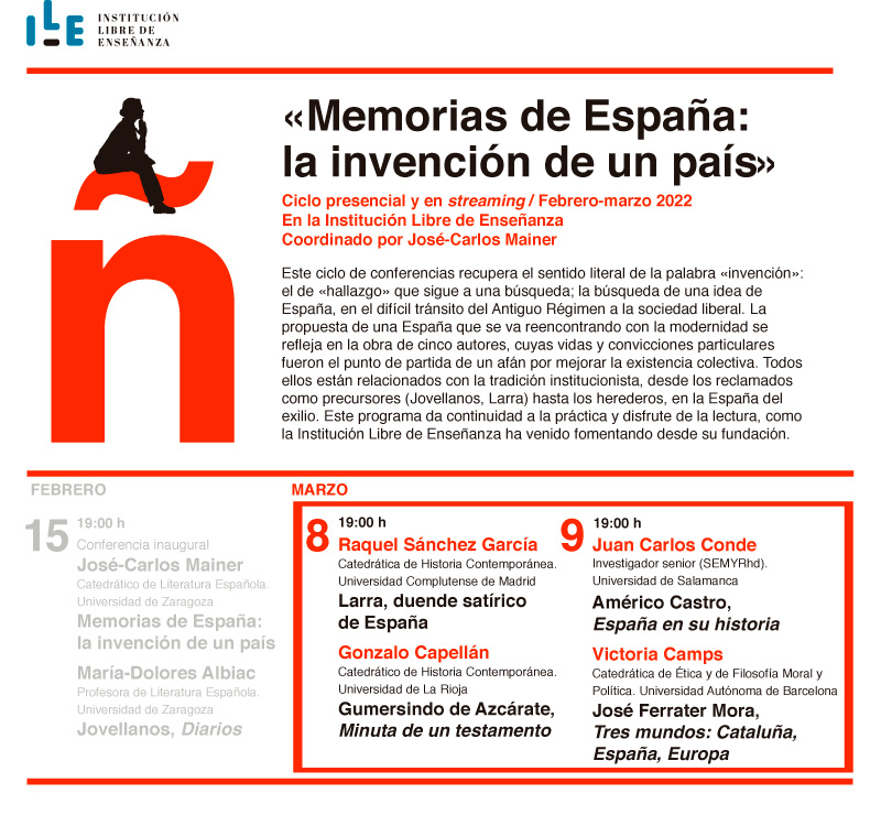 Publicado el marzo 5, 2022 en AGENDA CULTURAL y etiquetado en Institución Libre de Enseñanza, José Carlos Mainer, Memorias de España. Guarda el enlace permanente. Deja un comentario.
