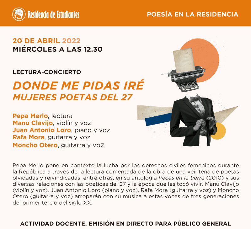Publicado el abril 7, 2022 en AGENDA CULTURAL y etiquetado en Lectura-Concierto, Mujeres Poetas del 27, Pepa Merlo. Guarda el enlace permanente. Deja un comentario.