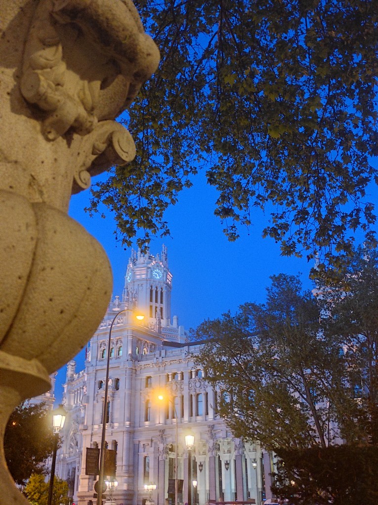 Cuando la noche se deja notar y el calor hace una criba de personal andante por la ciudad, me gusta echarme a la calle y recrearme con perspectivas, muchas veces familiares, pero vistas dentro de otras escenas urbanas paralelas. Aquí dejo una muestra de Madrid, envuelta en silencio, color y algún que otro verso esencial presidiendo el momento. (Fotografía de Tuchy Regueras)