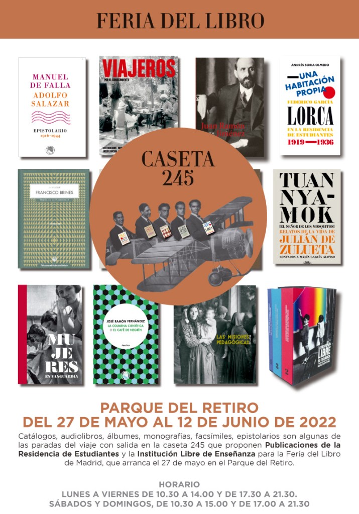 Hoy estamos de estreno, la Feria del Libro, viste sus mejores galas y nos convida a perdernos por los laberintos poéticos, narrativos, ensayísticos y más fuentes creativas, todo repartido, entre sus muchas casetas. Siempre falta algún sello editor, algún escritor, siempre hay ausencias subjetivas y objetivas, pero el caudal de placer que podemos encontrar es tanto que nos borrará las quejas. Quisiera indicarles un stand que presenta publicaciones de la Residencia de Estudiantes y la Institución Libre de enseñanza. Más información en el programa adjunto.