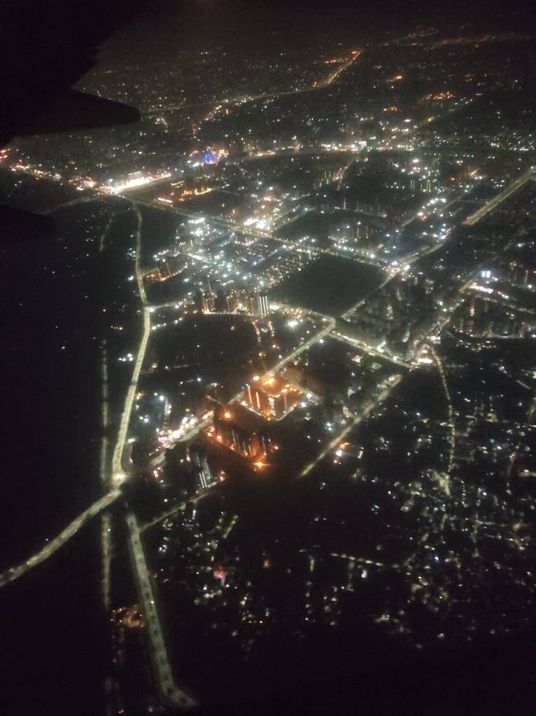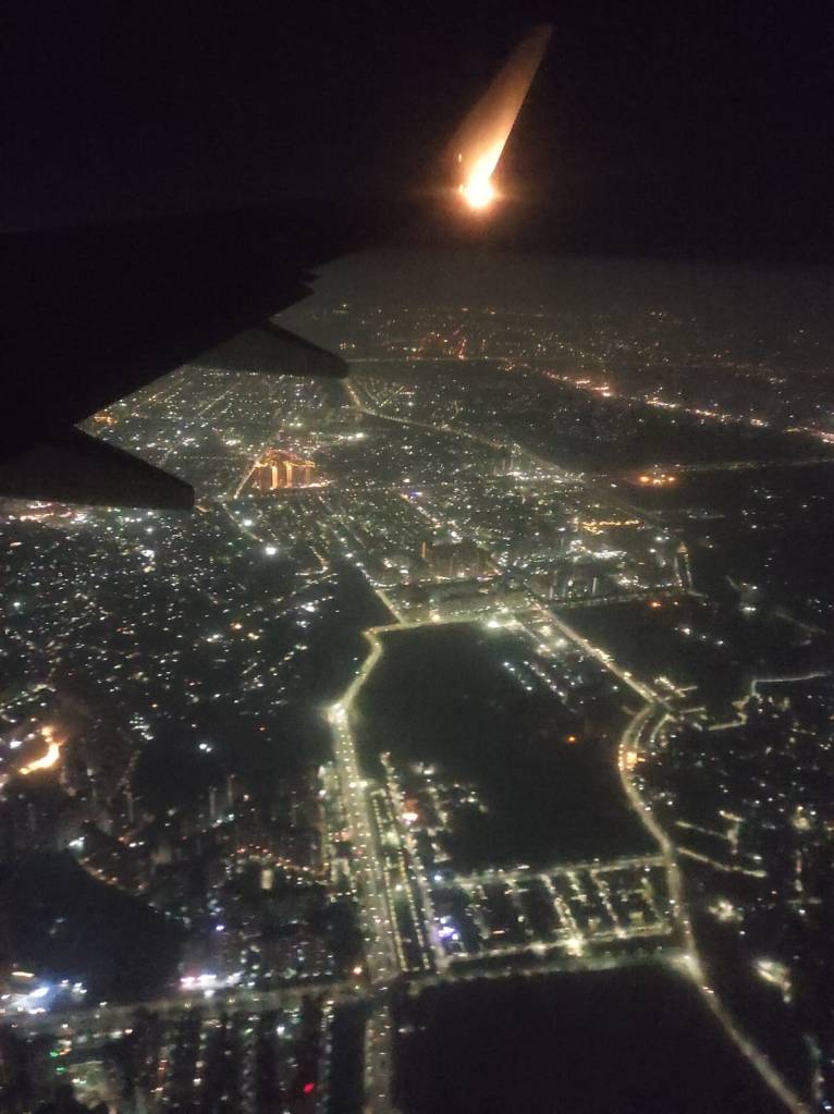 Los algoritmos lumínicos forman ciudades resplandecientes, laberintos de luz, formas y colores que visten la noche de vestidos de magia. Cuando la nave voladora busca tomar tierra las imágenes sembradas debajo de nuestros pies toman medida y nos gritan su bienvenida. Nos proponen una cita inmediata en sus escenarios de luz. Y otra realidad empieza cuando el avión aterriza y los motores desaforados manifiestan sus oraciones mecánicas. Ahora empieza otro viaje.