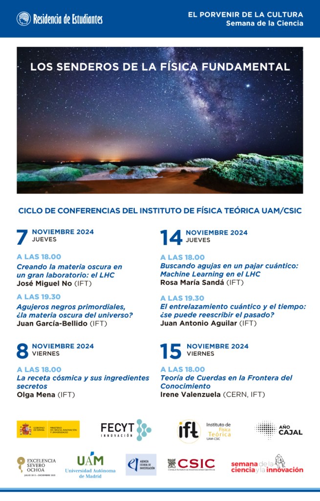 Dentro de la Semana de la Ciencia, en el apartado: «El porvenir de la cultura», hacemos referencia al ciclo de conferencias del Instituto de Física Teórica UAM/CSIC, que abordará contenidos sugerentes de primer orden científico. Para mayor información y detalle consultar el programa adjunto.