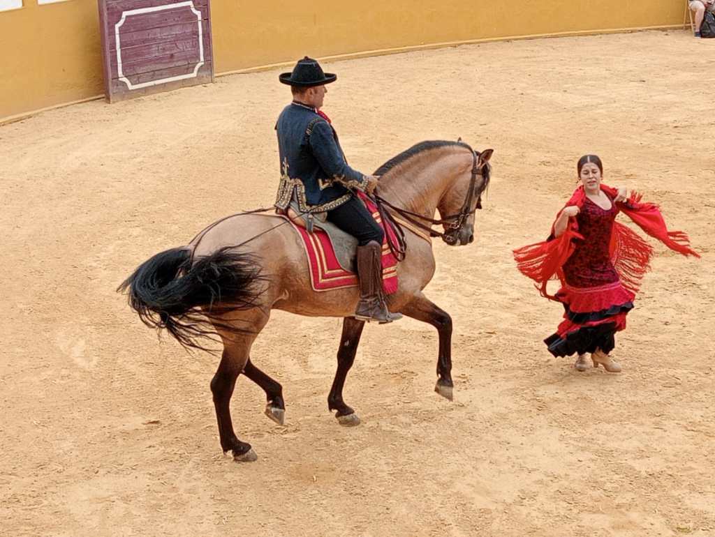 El caballo andaluz también sabe bailar y, lo hace, siempre que puede escaparse de otras obligaciones , para salir junto a una bailaora o grupo de las mismas a soñar bajo la música. Juntos, bajo el influjo mágico del momento se dejan llevar por las notas de flamenco elegidas para entregarse al arte del baile al trote, todo un espectáculo lleno de cromatismos y sentires. (Fotografías: Consuelo Montolio Paltré)