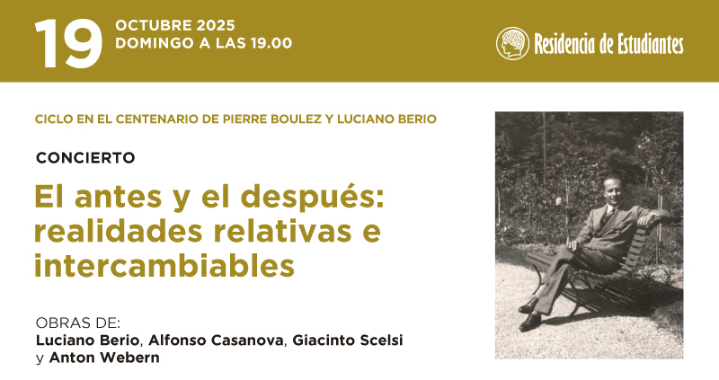 Nos hacemos eco del Ciclo en el Centenario de Pierre Boulez y Luciano Berio. Hablamos del concierto» El antes y el después: Realidades relativas e intercambiables» Encontraremos obras de Luciano Berio, Alfonso Casanova, Giacinto Scelsi y Anton Webern. Para mayor información y detalles consultar el programa adjunto.