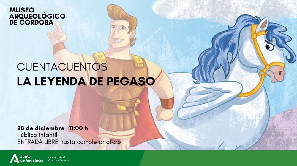 Esta claro que las actividades del Museo Arqueológico de Córdoba enriquecen y son multidisciplinares. En esta ocasión hablamos de cuentacuentos. El próximo día 28 el público infantil y el adulto que sigue saboreando la fantasía tienen cita con La Leyenda de Pegaso, pieza literaria ambientada en el propio museo y escrita por José Morales.