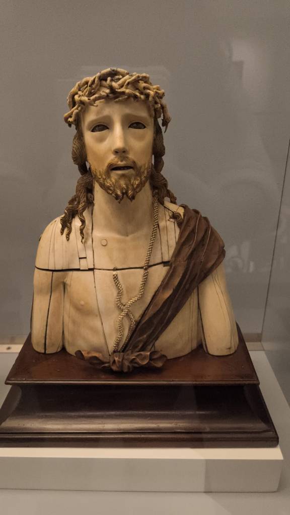 No podemos dejar de celebrar y felicitar, en estas fechas y desde estas páginas, con nuestro fraternal abrazo global a todo el mundo, al margen de razas, creencias y cualquier ideología. Y nos hemos decantado por este Ecce Homo. Atribuido a Claudio David o Pedro Disses, eborarios del Franco Condado (España 1650-1700). Realizado en marfil, nogal tallado y cristal. Procede, posiblemente, del Convento de Santa María de Sobrado (A Coruña)