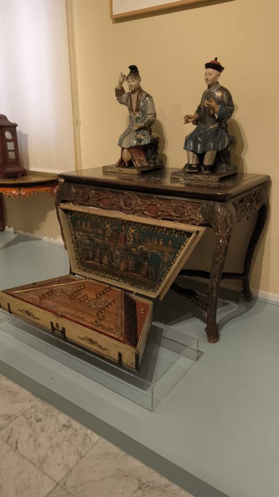Seguimos en el siempre sorprendente Museo Nacional de Artes Decorativas de Madrid donde podemos acceder a la contemplación y estudio de su inventario rico, entrañable y cautivador de toda suerte de piezas. Es uno de los museos con mayor representación en mobiliario y pequeñas piezas, que recogen el arte de nuestra historia, sobre todo, sin olvidar aportaciones foráneas. Por ejemplo, en la fotografía adjunta, podemos disfrutar de una pareja de músicos con cabezas basculante (China 1760-1790) madera tallada, estucada y Salterio de contras en su estuche (España 1773-1797) Madera, imitación de laca (lacca povera) papel y acero. Son estas muestras tan solo una acercamiento al copioso tesoro que esconden las cuatro plantas del museo, lleno de rincones increíbles donde enriquecer nuestro conocimiento.