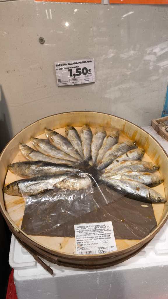 Seguramente, este producto y tantos otros, aparecen en cualquier esquina de nuestra geografía mediterránea, pero hacia mucho tiempo que no lo encontraba al paso y, de forma inmediata, me han llegado desde la memoria nombres como Pesca Salada o Ultramarinos. La desaparición de las tiendas de cercanía hacen que los escaparates de los establecimientos de ventas de comida parezcan todos iguales, pero no hace tantos años, estas viandas de andar por casa, crecían en cualquier punto urbano. Un pequeño recuerdo que me ha gustado disfrutar. (Fotografía de Tuchy Regueras)