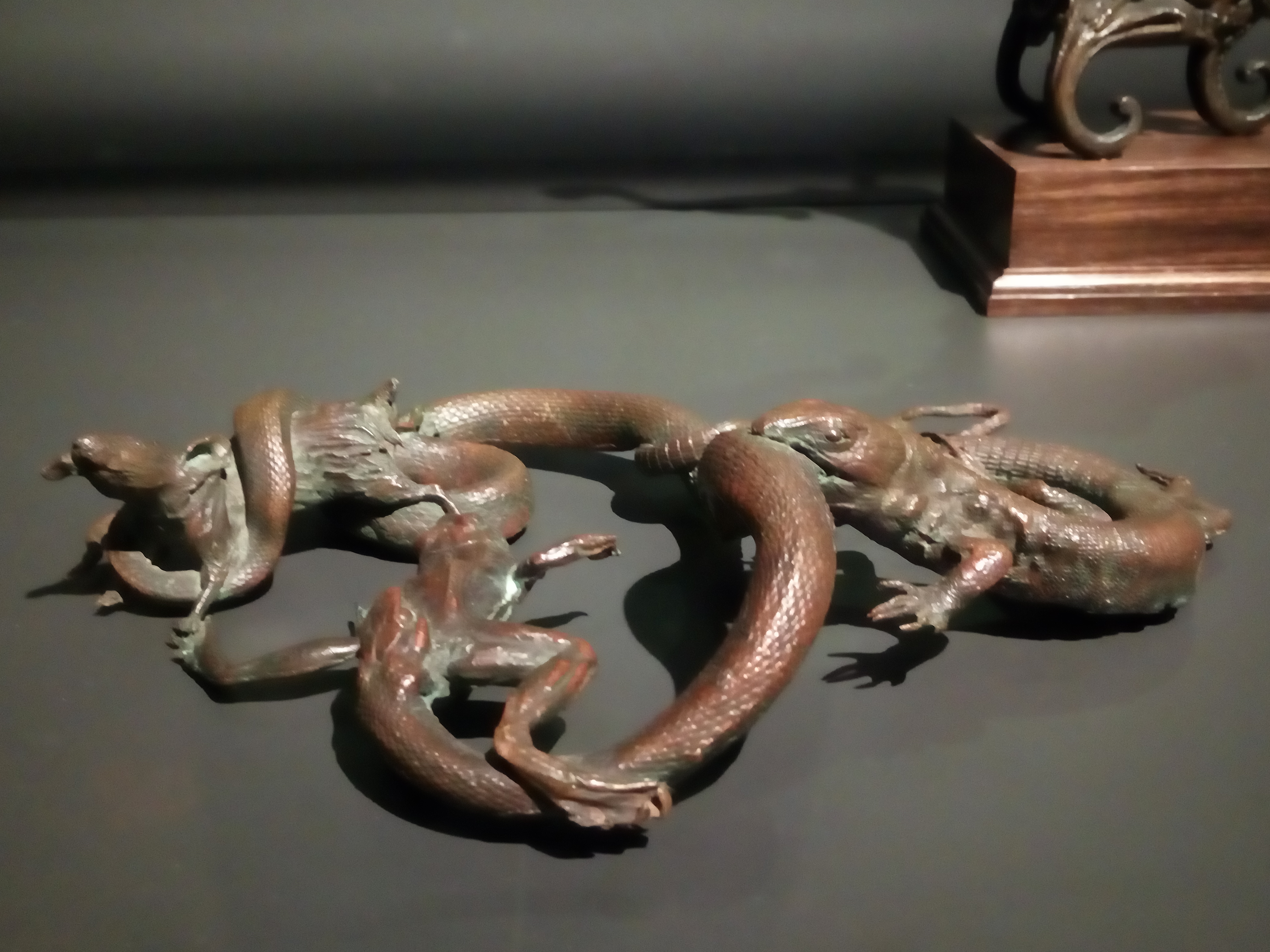 Ante nosotros una excelente pieza de bronce, muy bien facturada, pero que nos deja abiertas las puertas de par en par para establecer su significado. Bien podría ser un meteorito de las propuestas del Manifiesto Antropófago de Oswald de Andrade, una versión libre de la convivencia o un mero recreo por las costumbres de este mundo. Los protagonistas del adorno dejan dudas, ahora toca filosofar.