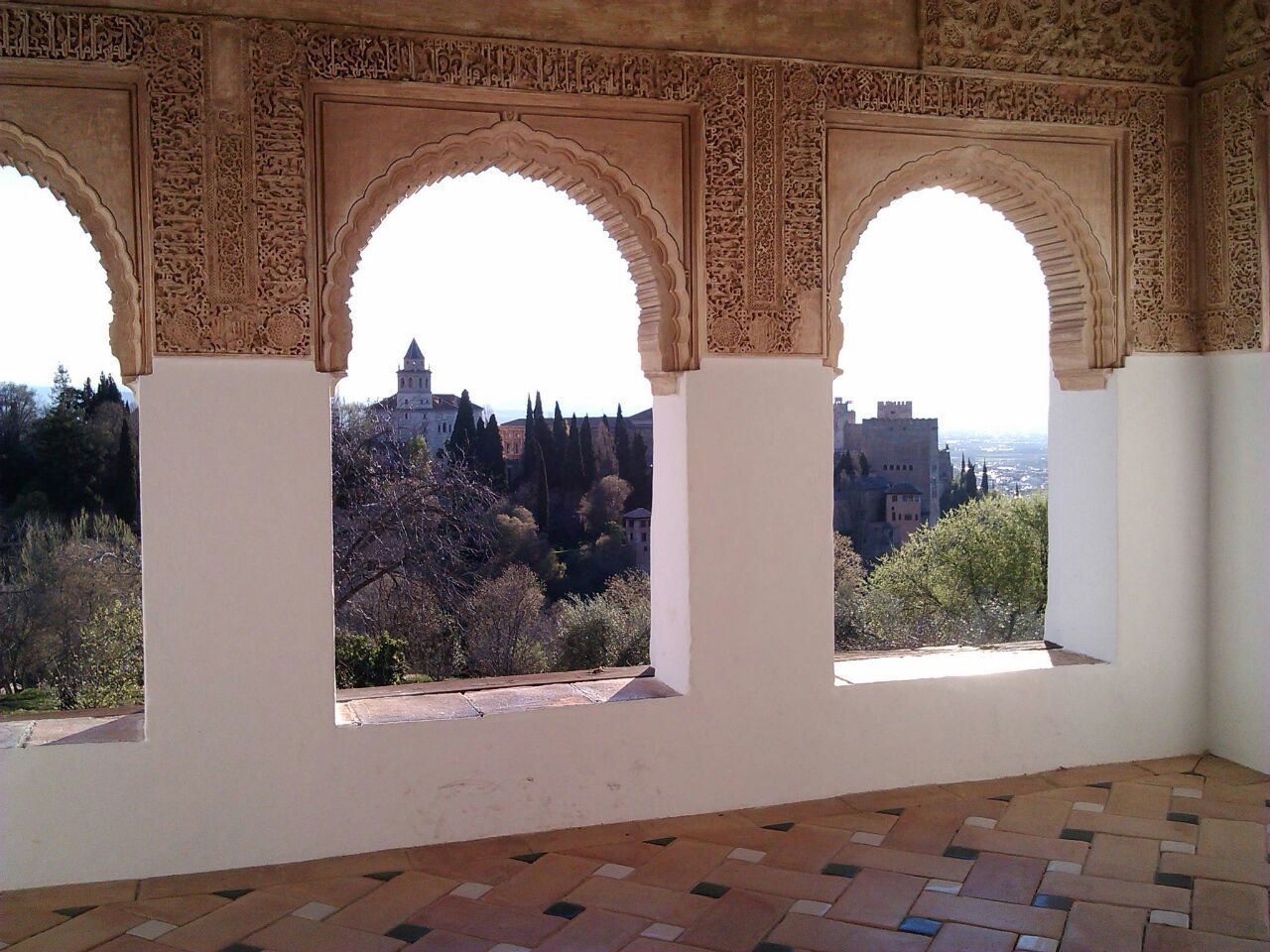 Suele ser habitual que los viajeros, curiosos, turistas y otras gentes se dediquen a empaparse de la Alhambra desde todos los puntos y perspectivas posibles. Tiene su lógica, pero a mí me gusta ponerme en el otro lado, para contemplar las vistas y las panorámicas desde arriba, desde la propia Alhambra, En el Generalife hay rincones que son auténticos miradores al exterior, rincones que parece, tal vez ese era su origen, sean escenarios poéticos para contemplar en la noche las estrellas y las vistas mundabas, repletas de arquitecturas y jardines. Centros de poder vibracional que te descubren escenas increíbles vestidas de misterio. Es otra forma de viajar, de mirar, de llenarse de las esencias que nos propone la singular e indescriptible Alhambra.