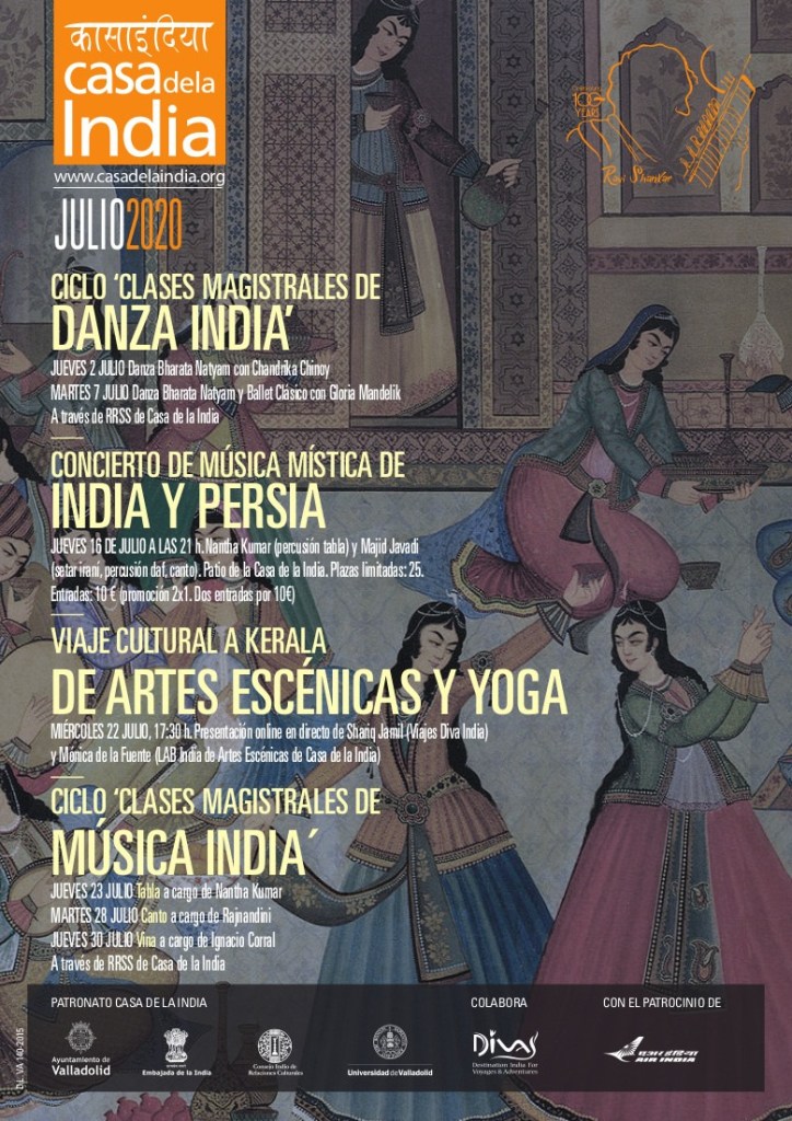 Acompañamos programa de julio de las actividades que tendrán lugar en la Casa de la India de Valladolid, centro cultural que ya lleva algunos años entre nosotros acercándonos la creatividad de la India en todos sus apartados. Animamos a conocer tan sugerente punto de encuentro.