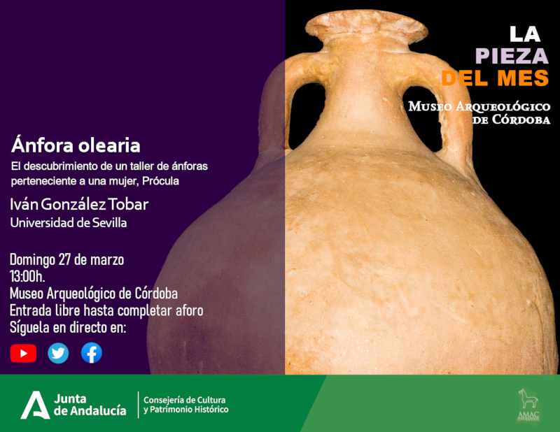 Si anda estos días por Córdoba, si habita en tan sugestiva y misteriosa ciudad o vive en alguna ciudad bien comunicada por alta velocidad, no lo dude, hay que visitar el Museo Arqueológico de Córdoba y descubrir un taller de ánforas pertenecientes a una mujer, Prócula. Hay que echar un vistazo al programa adjunto para conocer todos los detalles al respecto.