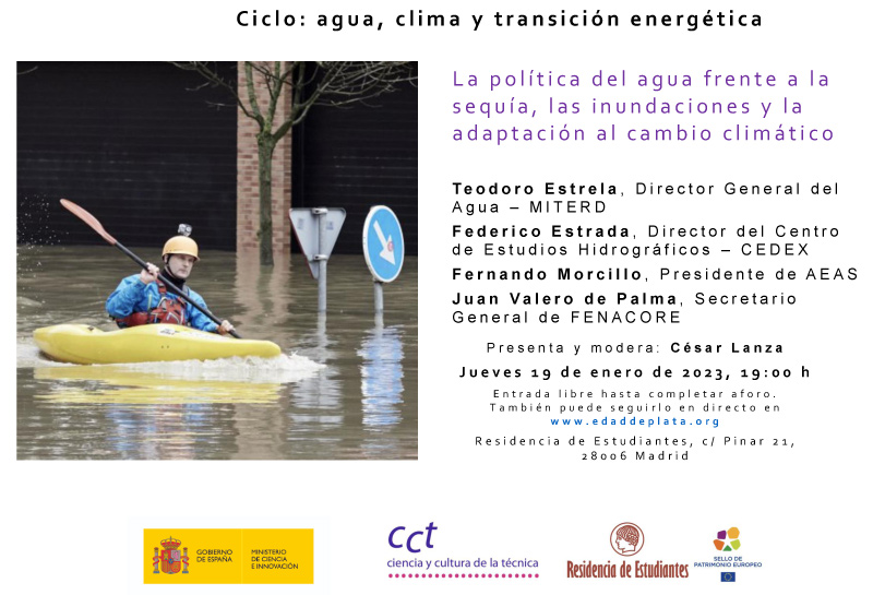 El próximo jueves 19 de enero en la Residencia de Estudiantes encuentro sobre la política del agua frente a la sequía, las inundaciones y la adaptación al cambio climático. Para mayor información y detalle consultar el programa adjunto.
